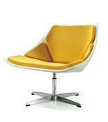 Fiberglass shell covered fabric, aluminium legs as swan chair